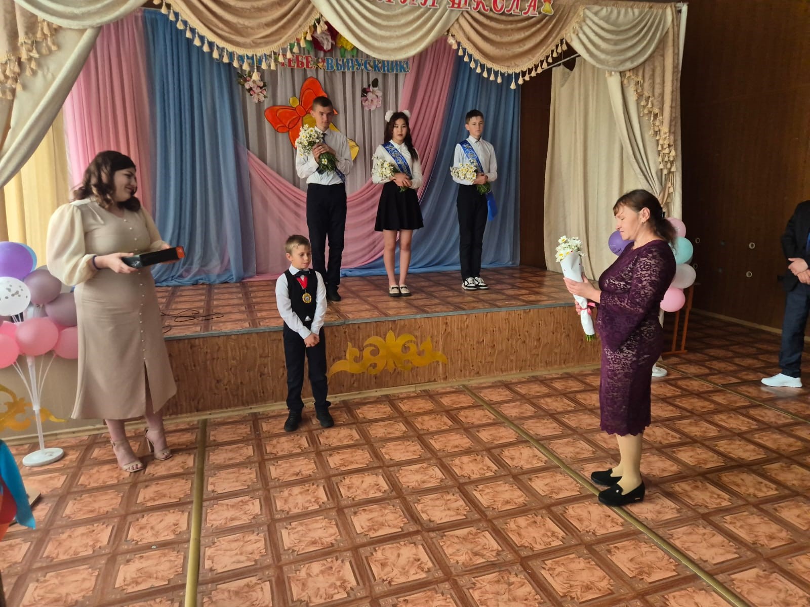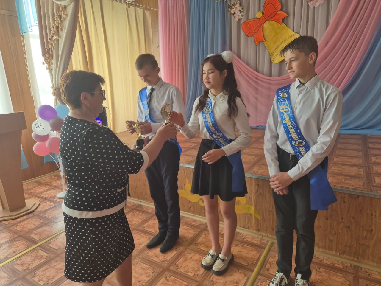 Сапта 9-сынып түлектеріне құрмет көрсетіліп, мектеп директорының естелік сыйлықтары табыс етілді.